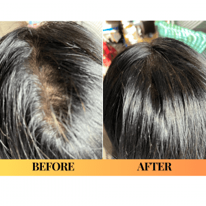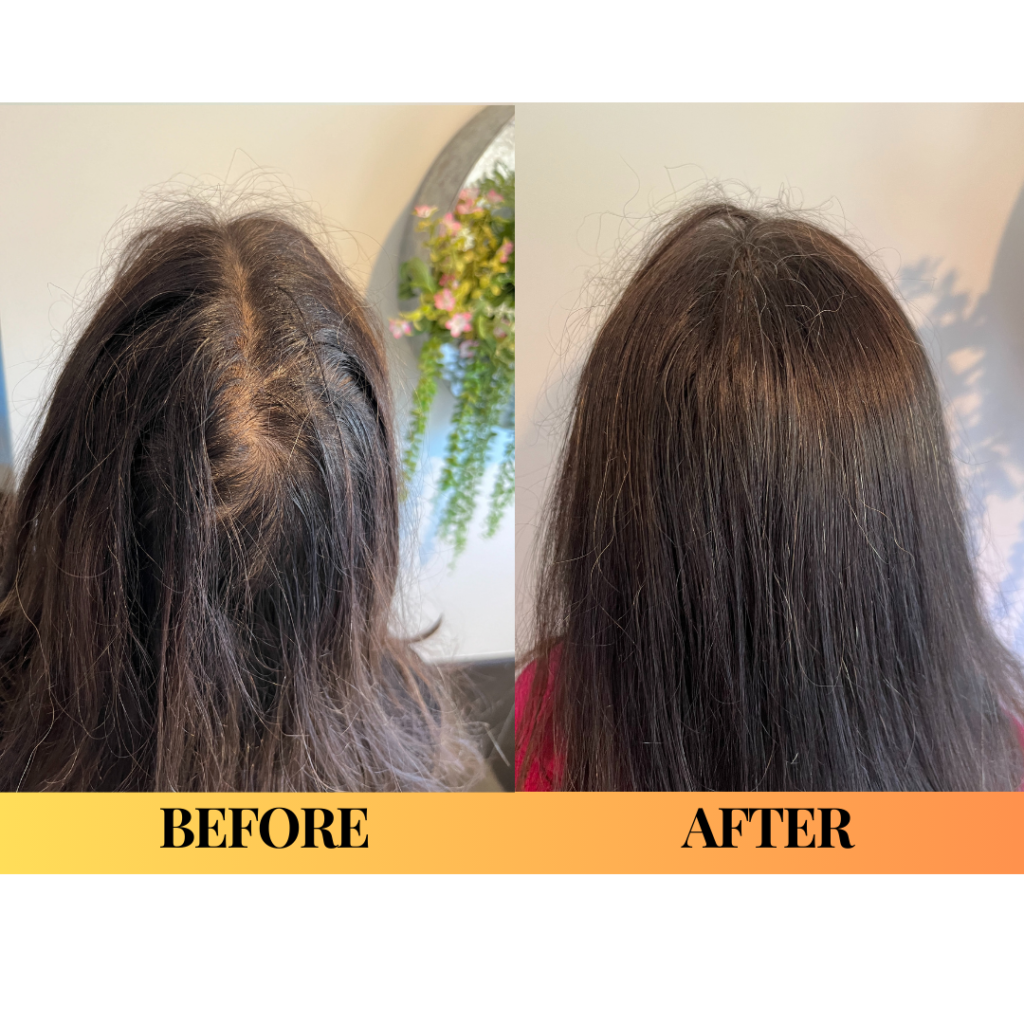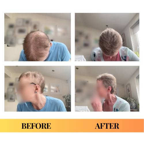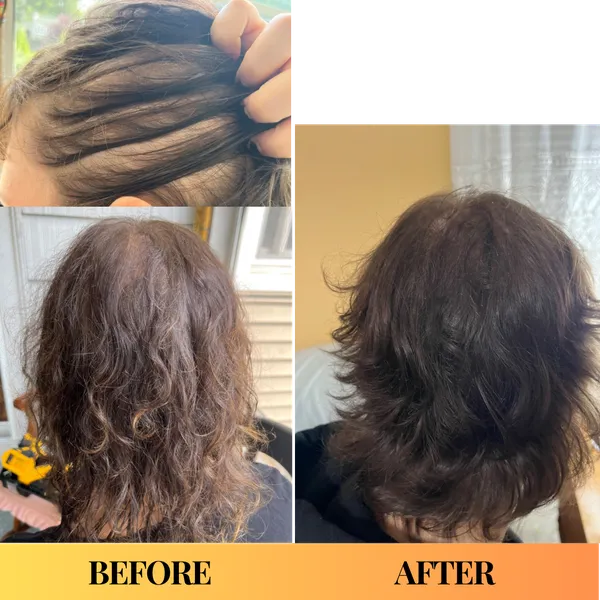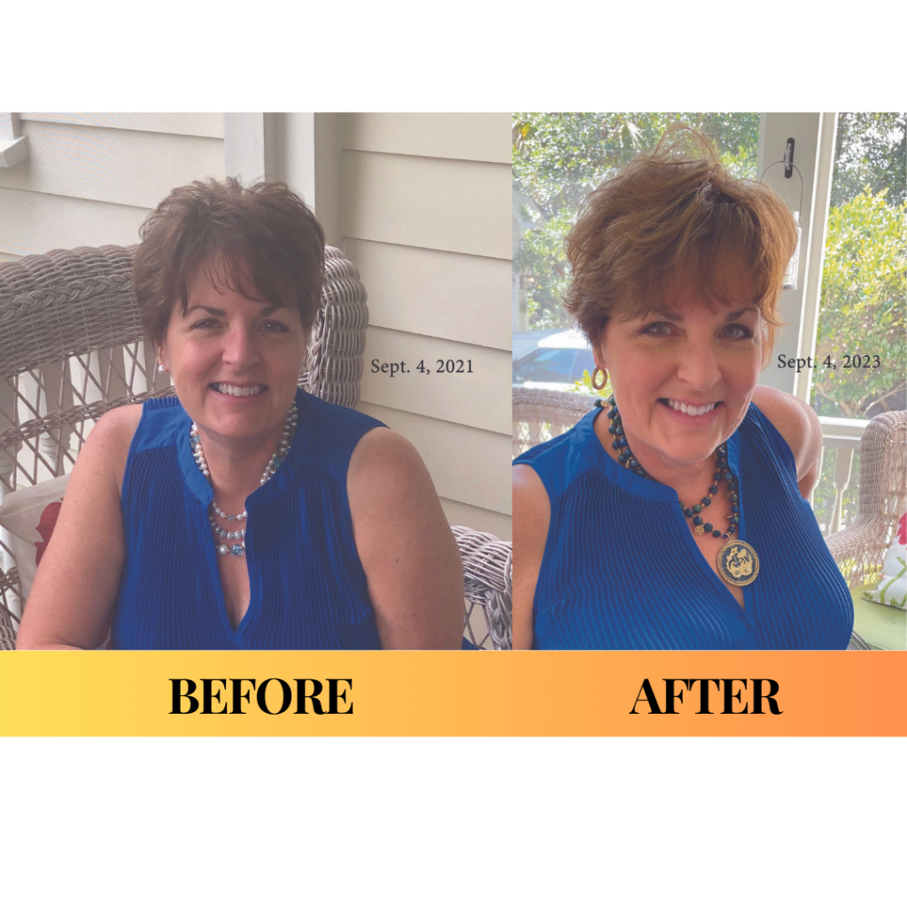 “In the 2021 photo I had used brown scalp powder to attempt to camouflage the thin areas, and a lot of hair spray, but I think you can see the difference anyway in the 2023 photo. Plus, I feel better and look better and more radiant!”“