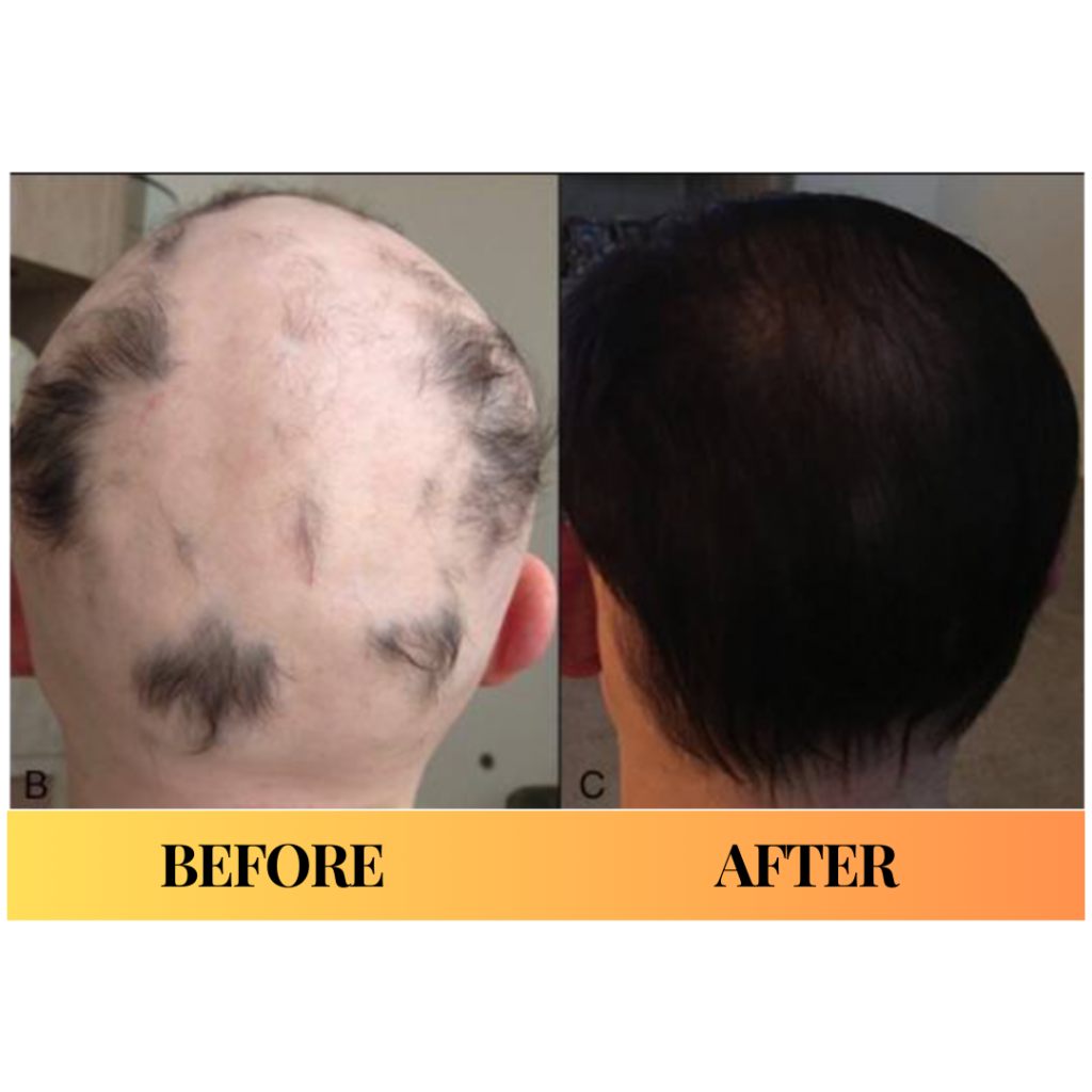 20-year old male with resistant C-diff underwent FMT. Prior to the transplant he had autoimmune alopecia universalis. Afterwards, he grew a full head of hair again, while also growing hair on his body that hadn’t seen hair in years.